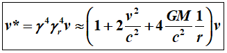 this results in a distance of [ℓ+ℓ(v2/c2)]