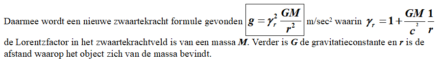 Een groot gevolg is dat het begrip zwaartekrachtveld aan herziening toe is. Een object ervaart de zwaartekracht door de momentane waarneming. Als de massa op grote afstand staat en zich snel verplaatst, dan is de zwaartekracht toch gericht op de plaats waar de massa wordt gezien en niet op de plaats waar de massa zich in werkelijkheid bevindt. Dat is een groot verschil met de theorie van Newton/Einstein. In onze theorie moeten we dus rekening houden met de voorwerpsnelheid om de zwaartekracht te berekenen.