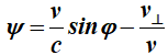 Uit de figuur is te zien dat de hoek waaronder vanuit de komeet de zon wordt waargenomen ten opzichte van zijn bewegingsrichting gelijk is aan: jy+Dj radialen.