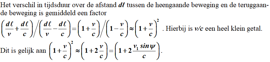 We beschouwen vanuit M2 de ster M1 die zijn baan rond het centrum van het sterrenstelsel beschrijft. De ster M1 blijkt er dan 2R/c sec langer over te doen om van het dichtstbijzijnde punt (het peripunt) ten opzichte van M2 het verst verwijderde punt ten opzichte van M2 te bereiken en 2R/c sec korter om vanuit het verst verwijderde punt het peripunt te bereiken