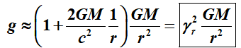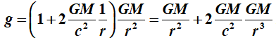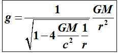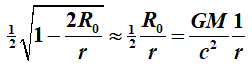 de bekende uitdrukking van Einstein voor de tijdvertraging op de afstand r