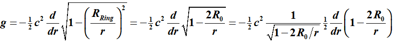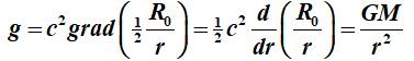 Daaruit vinden we de gravitatieversnelling via de afgeleide naar r , dwz de gradiënt, en